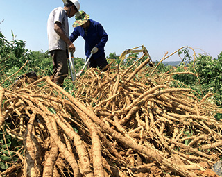 粵森優(yōu)質牛大力種苗成熟后現場開挖結薯效果生長快、結薯多、產量高、藥效有效成分高